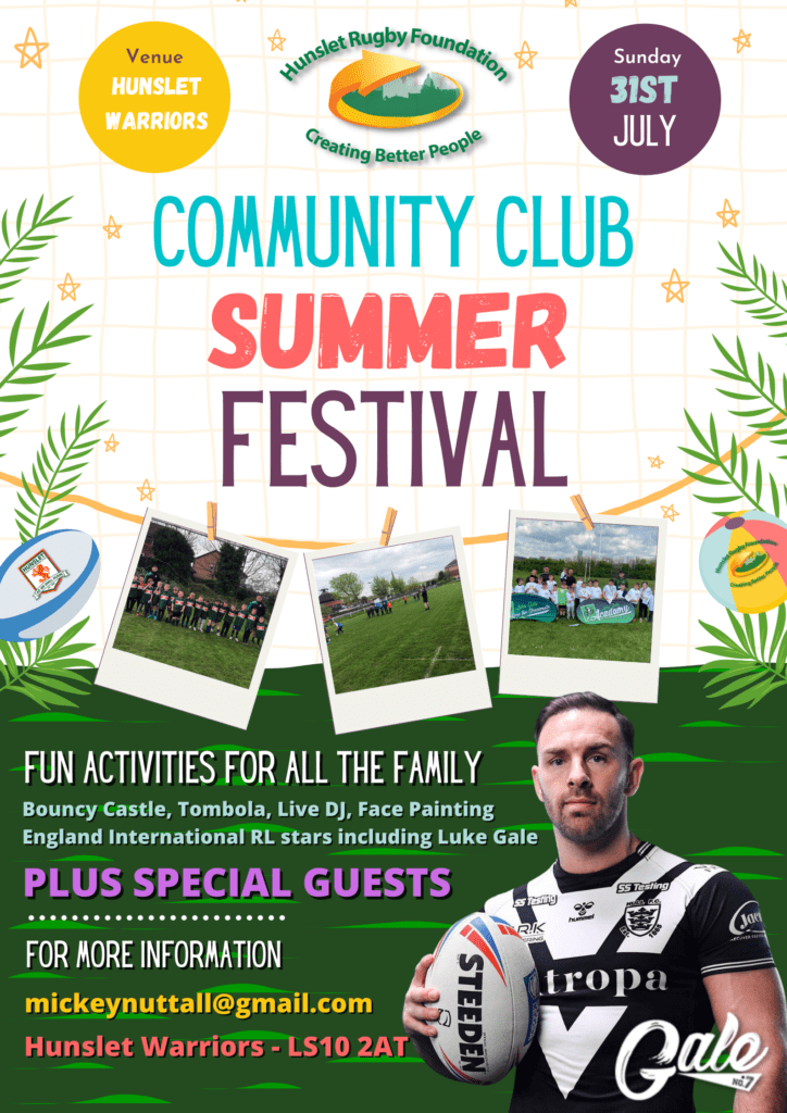 “Being realistic, we appreciate that this is our first festival, so we’re not going too overboard with it. But we have managed to get some great sponsors on board, with a few more to be announced at a later date. The Hunslet Foundation and the Luke Gale Academy can’t wait for the day to arrive and we’re looking forward to bringing community clubs together that may not have had the chance to play one another without this opportunity.”
