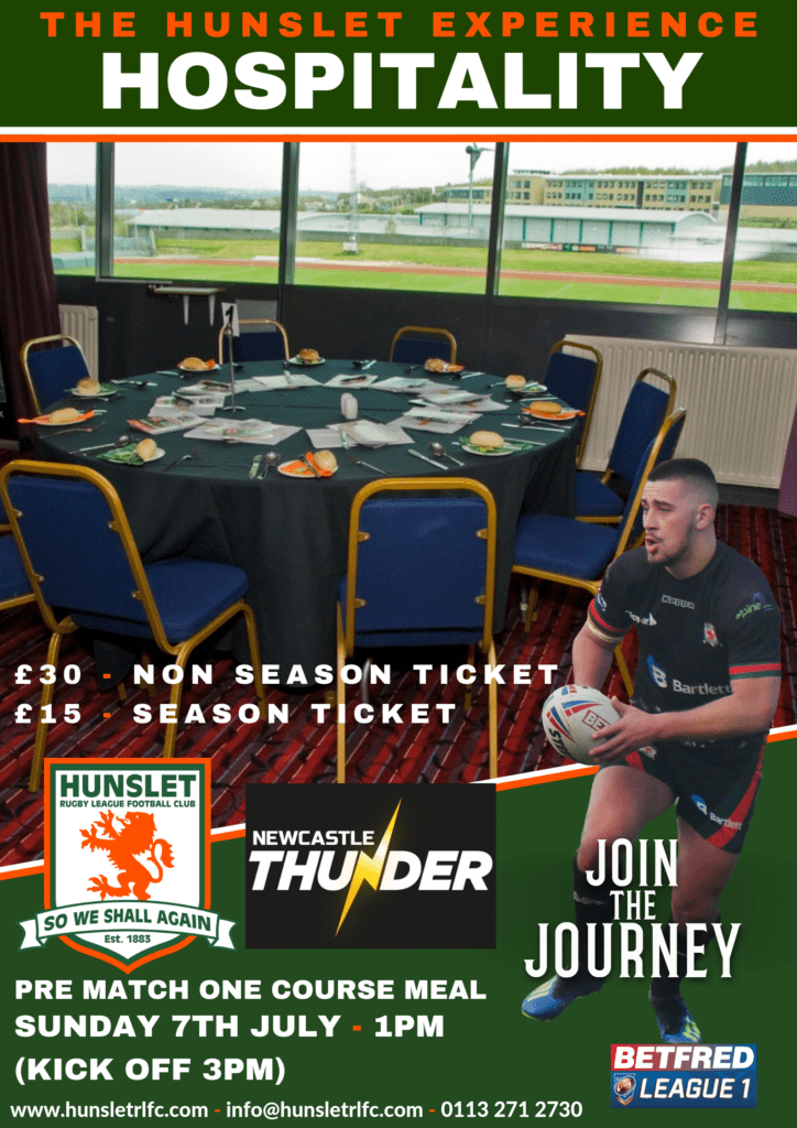 Hunslet RLFC are gearing up for the visit of Newcastle Thunder on 7th July (3PM KICK OFF).