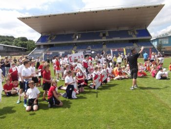 The Queen’s Baton passed through Leeds on its way to the Commonwealth Games in Glasgow via all the Commonwealth Countries. The Baton came to the home of the Hunslet Hawks where it was met by over 500 youngsters from local schools.