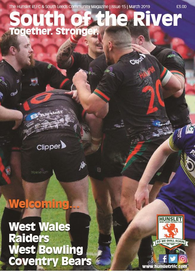 The March 2019 issue of ‘South of the River’ which is devoted to Betfred League 1 leaders Hunslet RLFC and amateur Rugby League in general in south Leeds is now on sale priced at just £3.