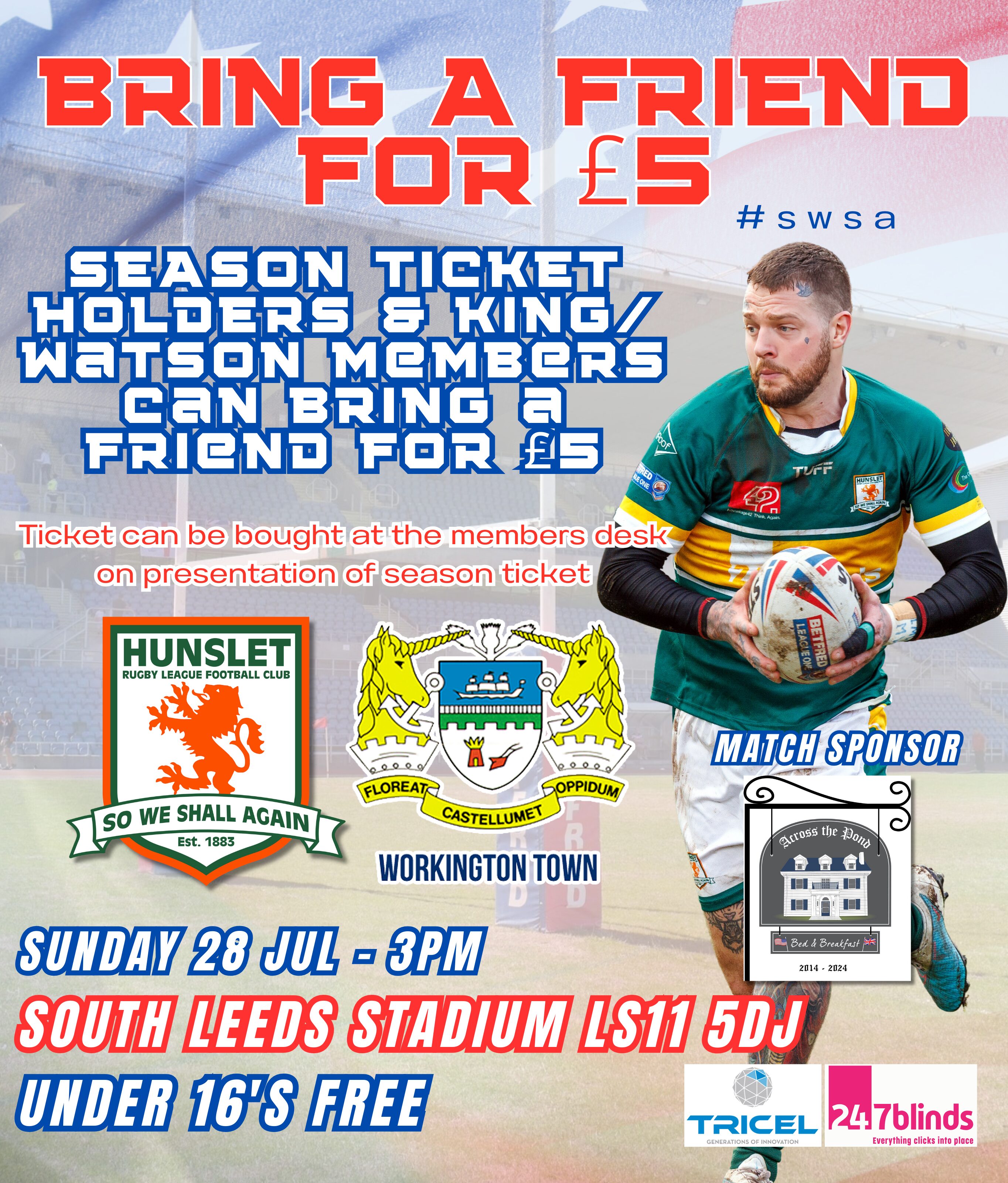 As we celebrate our USA themed match against Workington Town, we are pleased to promote a special offer. Season Ticket holders and King / Watson Members can bring a friend for just £5. Ticket can be bought at the Members desk on presentation of your Season Ticket.