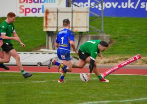 But young players never give in and Leeds were handed a lifeline with a strange try on 65 minutes. The Hunslet defence seemed to stop and wait for the referee’s whistle, but it never came and Leeds’ Iwan Stephens ran 50 yards for a try.