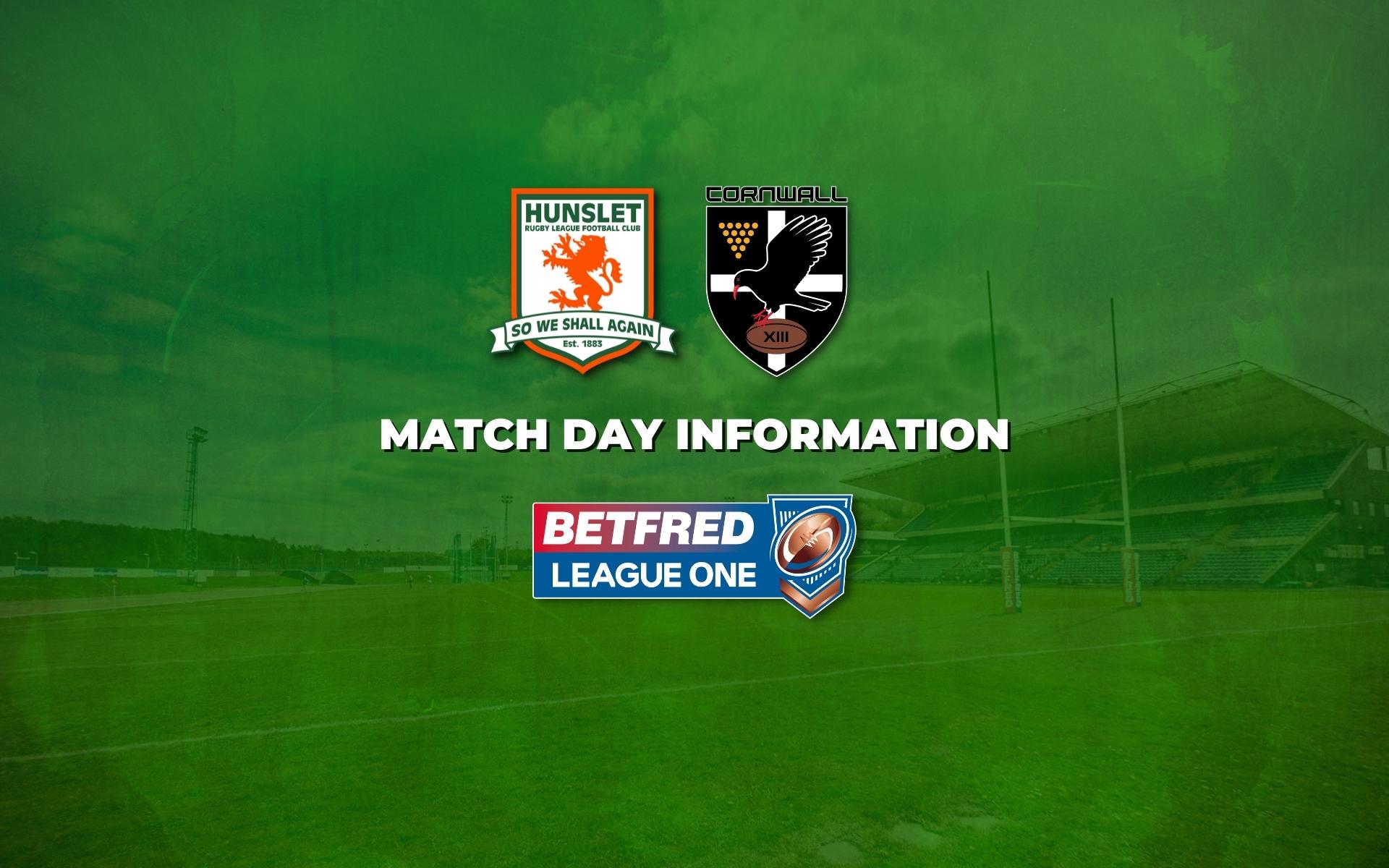 Match Day Information Hunslet RLFC vs Cornwall 8th May 2022