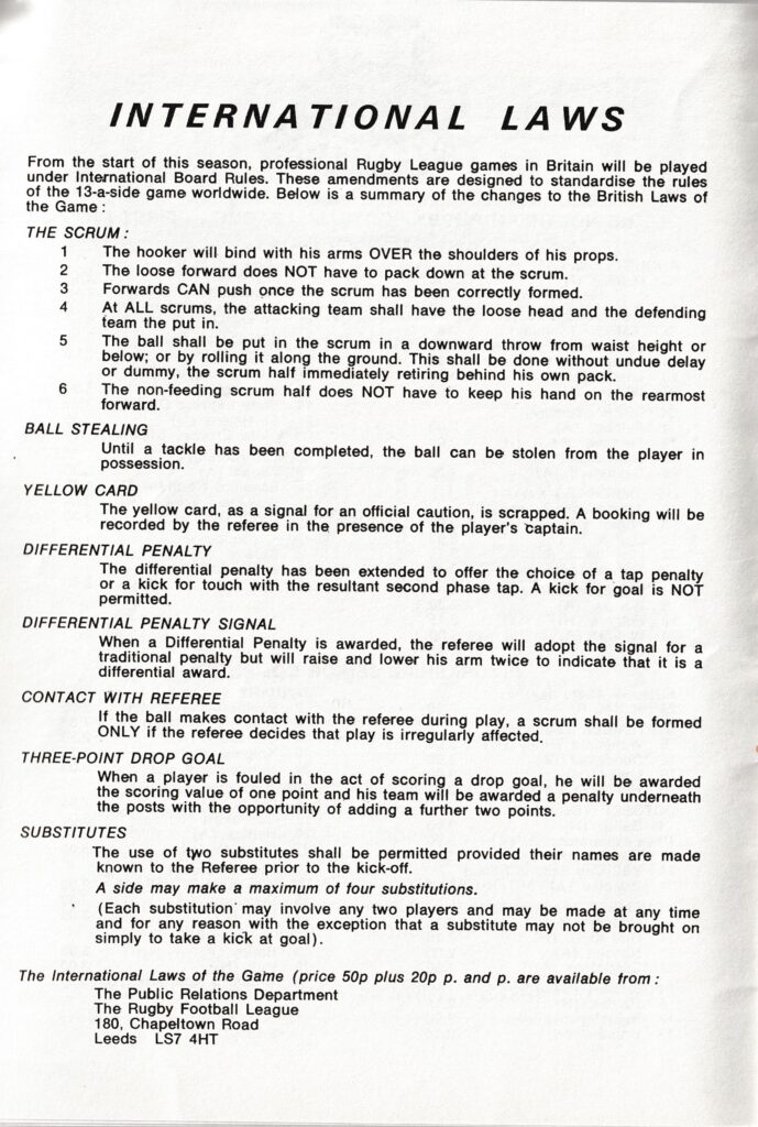 The York programme for Neil’s debut had a full page of changes to the Laws Of The Game as the Rugby League brought our domestic game into line with Australia.