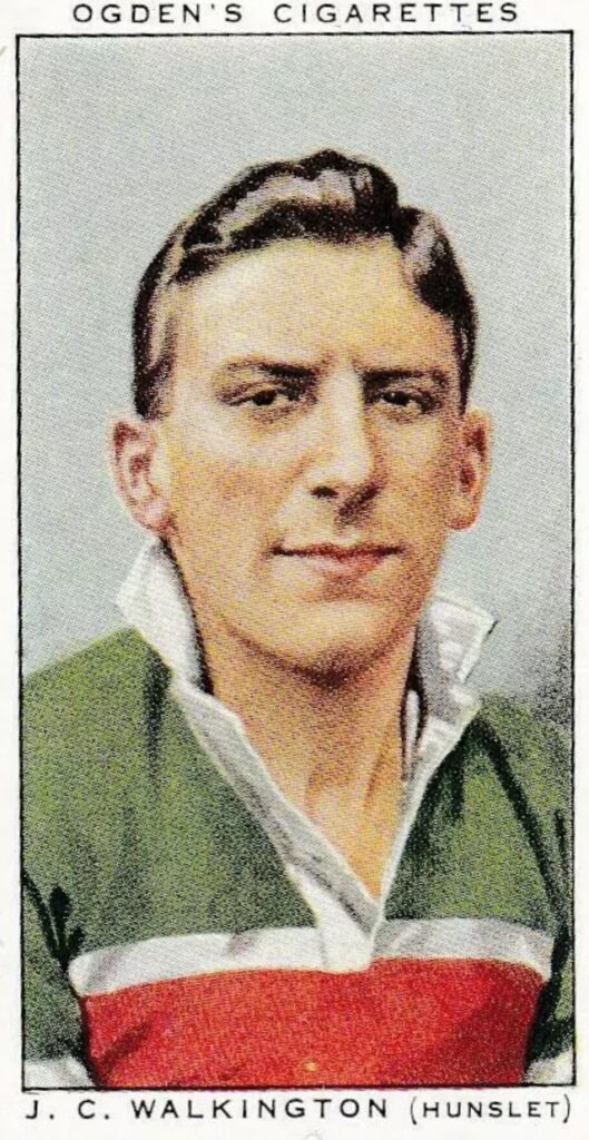 Having signed on yesterday from Burley RU for £300, John Christopher “Jack” Walkington was today registered with the Rugby League. In 22 seasons at Parkside he achieved everything you could in the game except for a Great Britain cap. Initially a centre, he made the full-back position his own. He played in both the 1929 and 1931 Yorkshire Cup finals, getting a winners medal in the second, the same season that he also got a Yorkshire League winners medal. In 1931 he scored 11 goals against Featherstone Rovers to set a new goals in a match record and the following season he kicked 113 goals for 226 points, again new club records. In 1933 he was appointed club captain, a position he held until 1945/46 and in which time he lifted both the Challenge Cup (1934) and Championship Trophy (1938). On the representative stage he was awarded 15 Yorkshire caps, 4 England caps and in 1936 he played in a Tour Trial. Even in the war, in 1942/43 when Hunslet did not compete, he didn’t take a rest, turning out 21 times as a guest for Leeds. His Hunslet stats were 577 appearances, 35 tries, 576 goals and 1,257 points. Truly a great player and rightly in the club’s Hall of Fame.