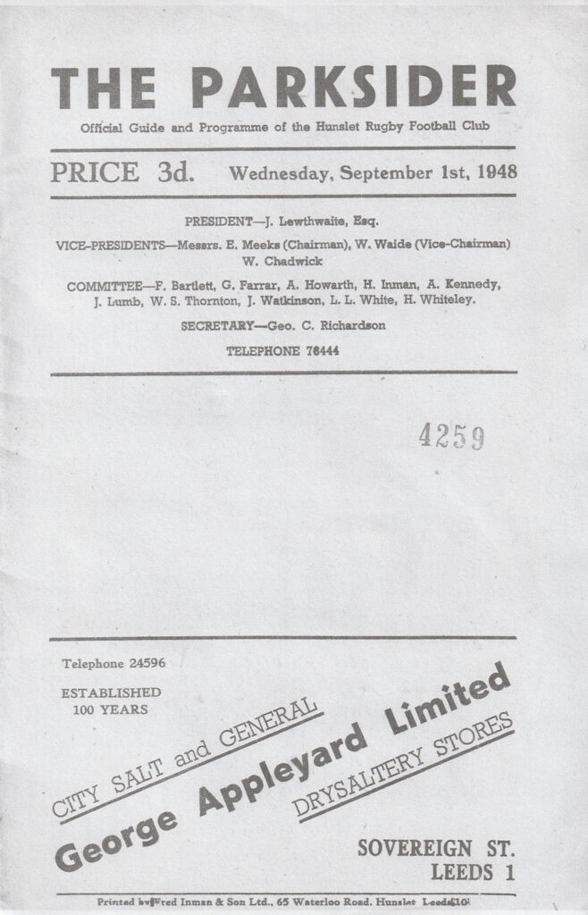 1888 William Stephens – a forward, he would play 124 games in six seasons. 1900 Tom Tunningley – also a forward, he played 78 games in three seasons after which he sadly passed away at a young age. A Yorkshire player. 1902 Harry Wilcox – 116 games in four seasons. He had signed from Bristol RU and he played in the 1905 Yorkshire Cup final. 1962 Fred Ward – brought in as player/coach he steered Hunslet to two Yorkshire Cup finals and a Wembley appearance as well as Yorkshire appearances. 1993 Giles Boothroyd – signed from Castleford, he was at Hunslet for five seasons and made 93 appearances scoring 27 tries. 1993 Eric Kibe – as far as I know our only Kenyan player, Eric played 45 times scoring 19 tries.