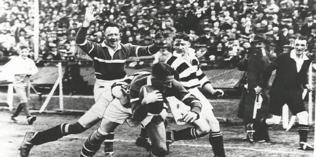 The 1906 fixture was at Salford and there was an unusually low attendance of 5,000. Bill Jukes was in the pack in what was described as an “indifferent” match. Lancashire won the match 19-0 but scored most of their points in the last ten minutes.