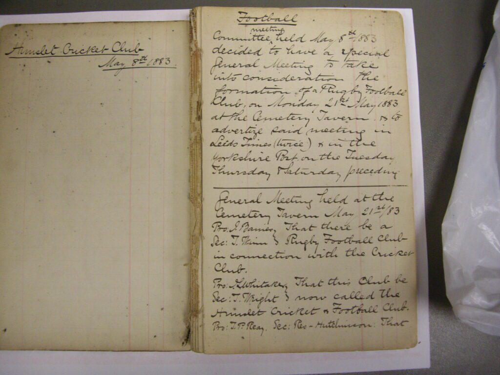 In 1883 at a meeting of the Hunslet Cricket Club Committee, it was decided to have a Special General Meeting to consider the formation of a Rugby Football club which would be held at the Cemetery Tavern on 21st May.
