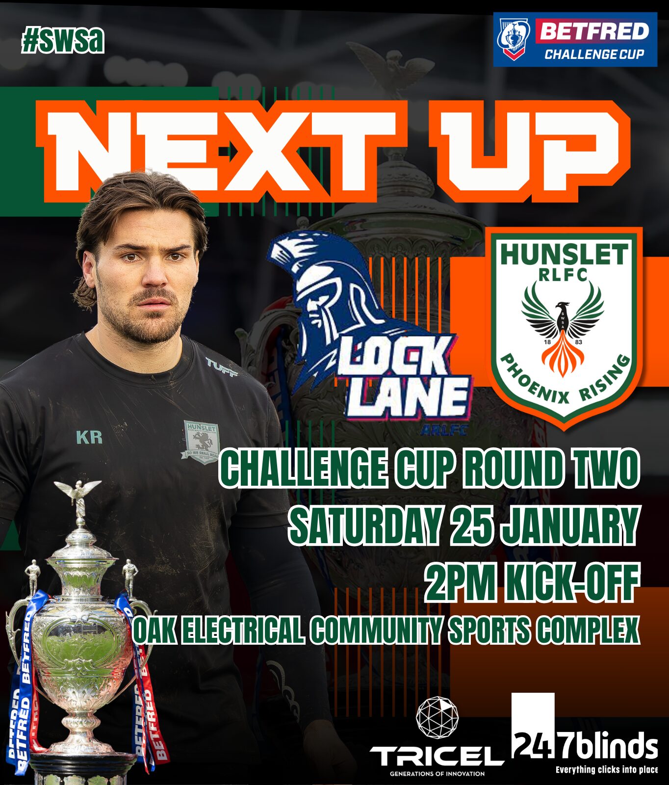 Our second round Betfred Challenge Cup tie against Lock Lane ARLFC will take place at the Oak Electrical Community Complex on Saturday 25 January, 2pm kick-off. More details will be announced in due course.