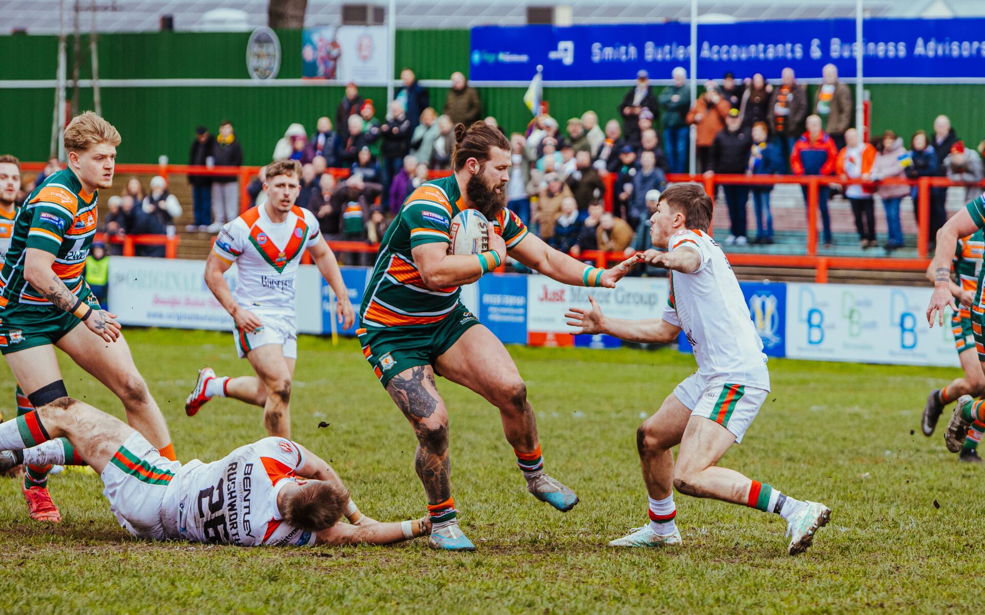 That should have been it before the break, but frustratingly Hunslet lost the ball then conceded a penalty and on 39 minutes Brad Holroyd again found himself space to score in the corner. Beharrell converting. 24-26 at the break.