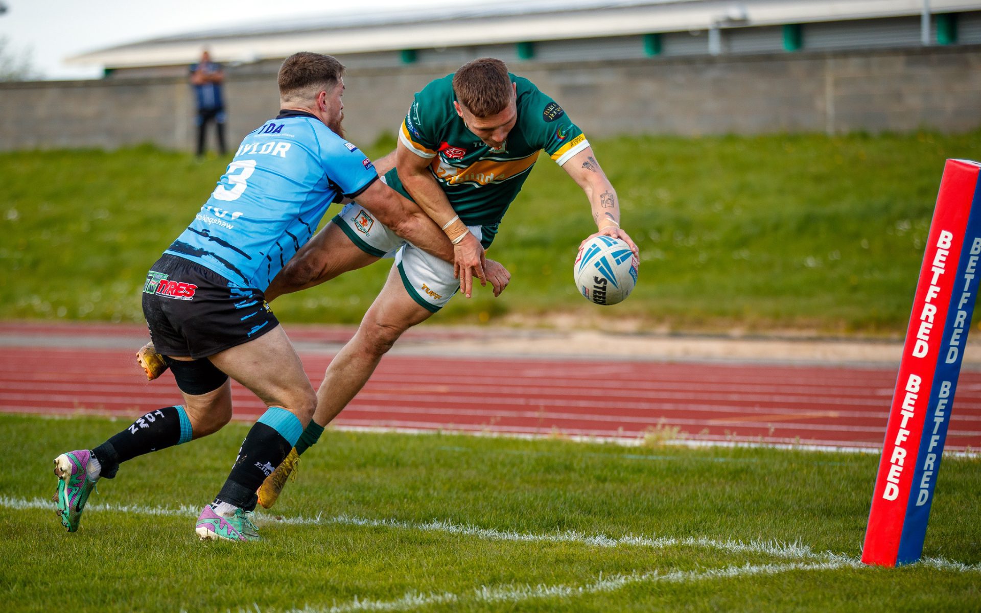 The half was ending on a high note for the home side. Harvey Hallas and Ethan O’Hanlon carved a path down the centre for Matty Beharrell to put an inch perfect kick up, Jude Ferreira leaping to score. 18-12 and Hunslet didn’t want the break.