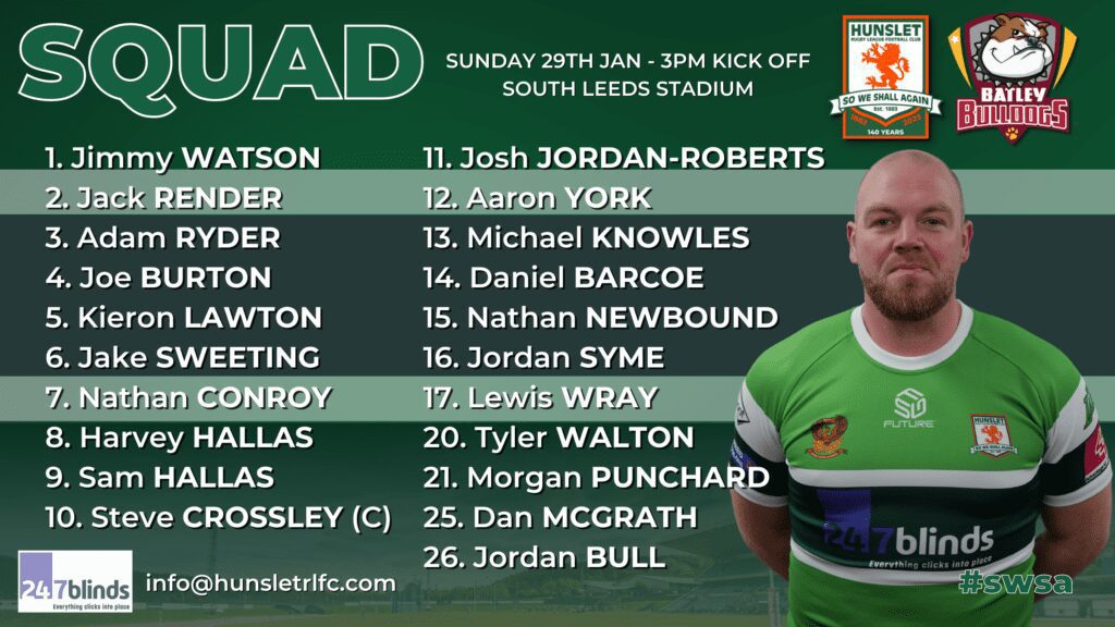 Head coach Alan Kilshaw has confirmed his 21-man squad for Hunslet Rugby League club’s home friendly against Batley Bulldogs on Sunday (29 January, 3.00pm).