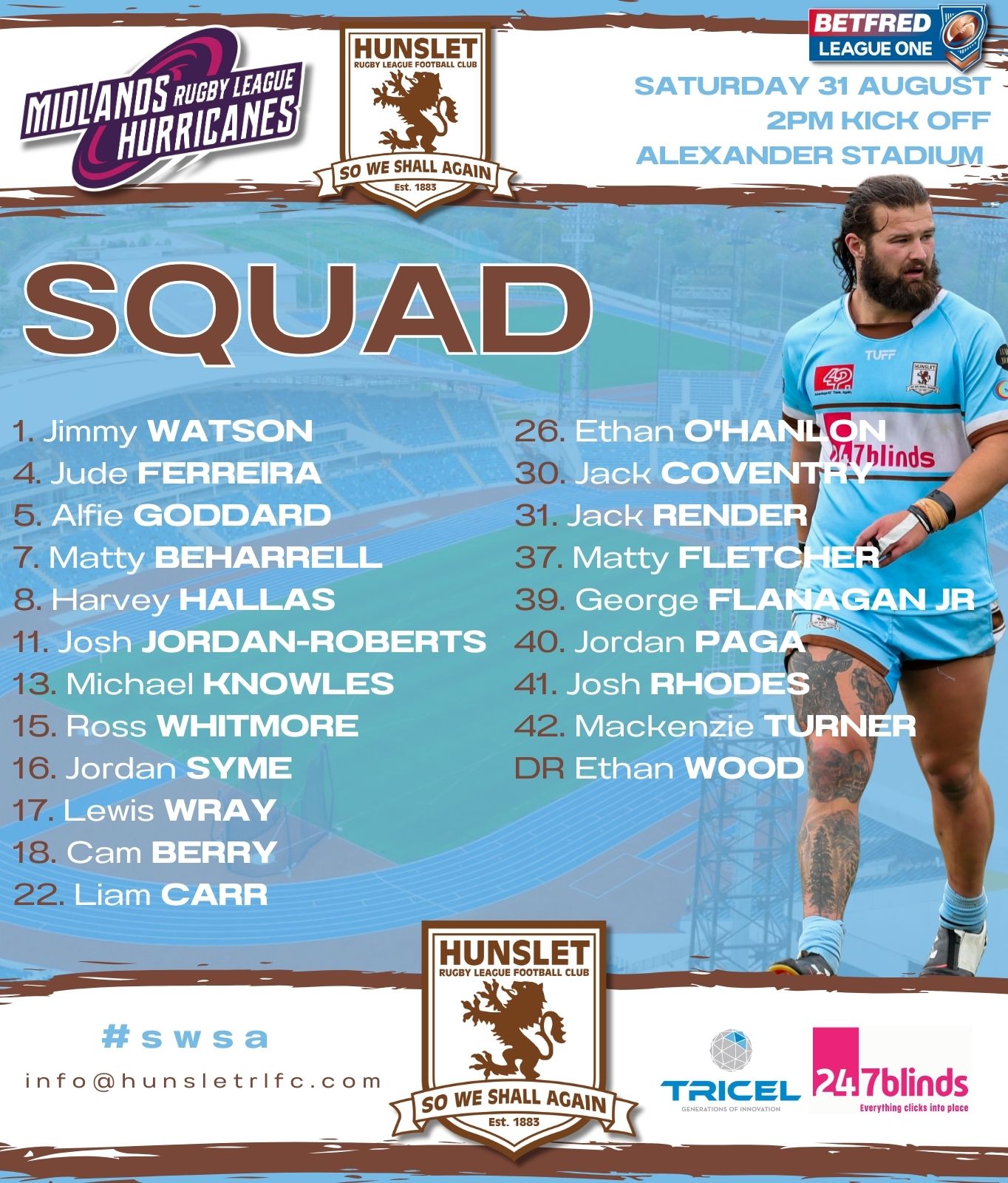 Hunslet name an unchanged squad from last week, but as ever at this time of the season there are knocks and a few players are carrying injuries so will be monitored before Saturday.