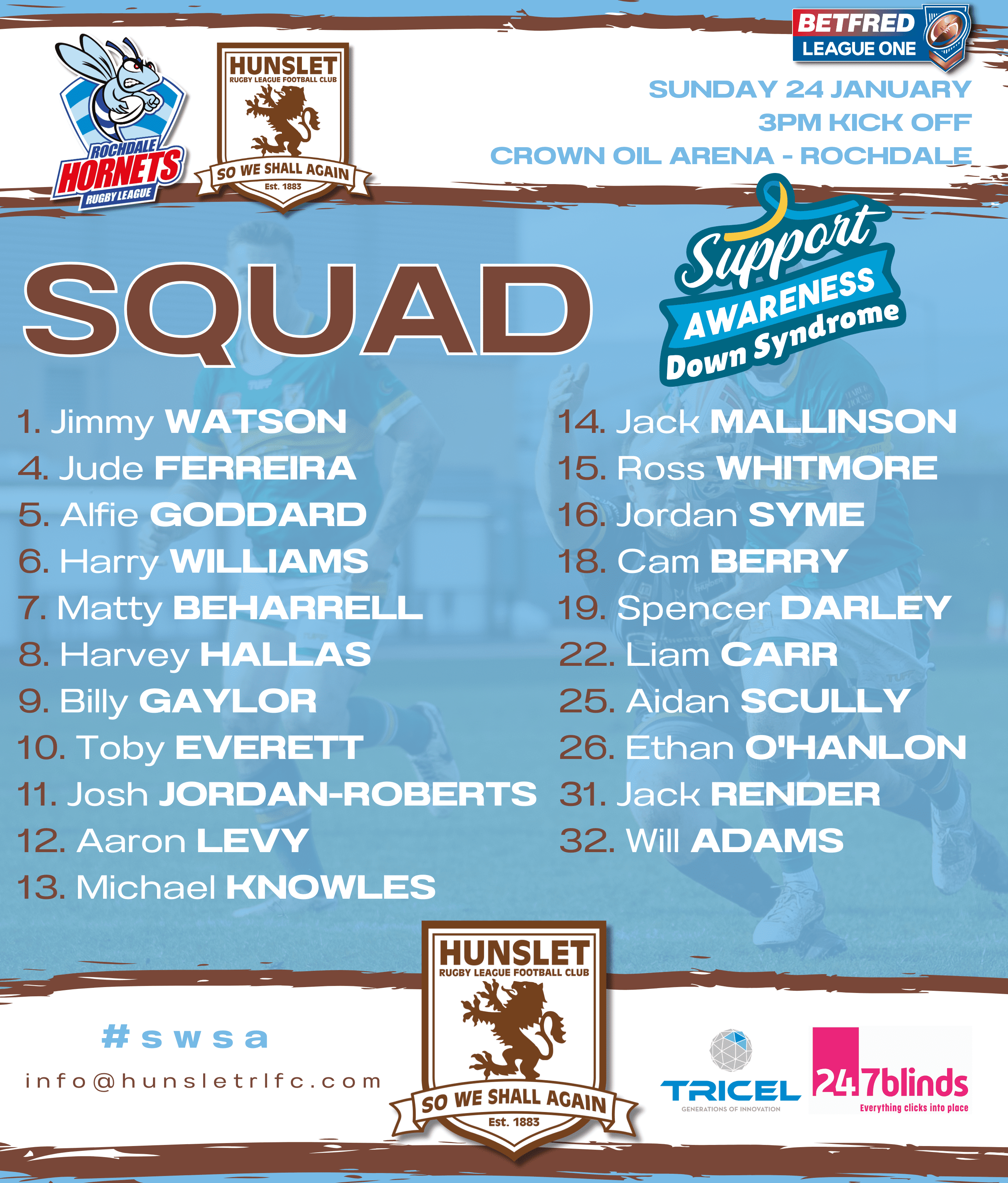 Head Coach Dean Muir has today named his 21 man squad to take on Rochdale Hornets. The game takes place at the Crown Oil Arena, Rochdale this Sunday (24 March) with a 3pm kick off.