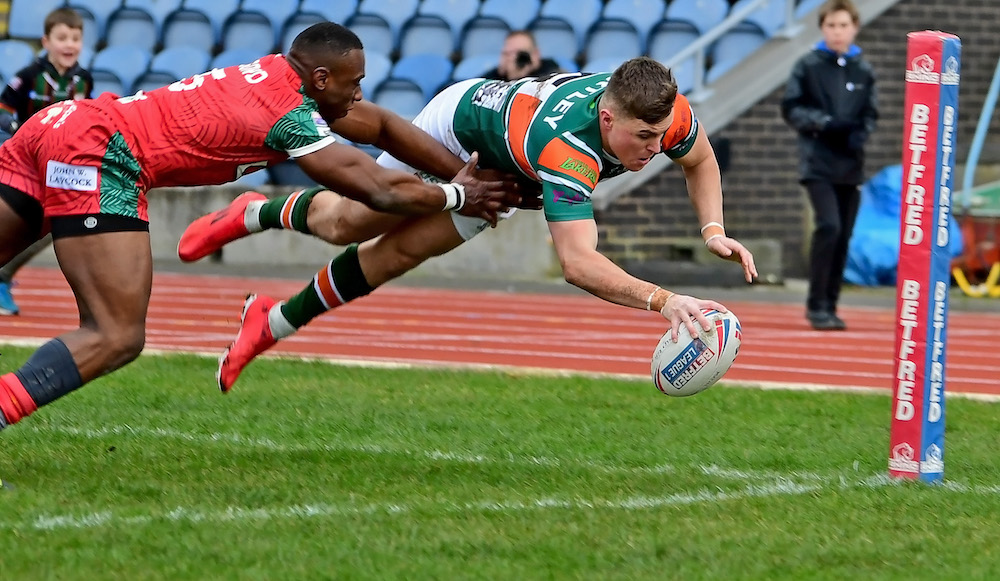 Truth be told both sides were rusty early on, sets not being completed and unforced errors with the ball, but Hunslet slowly got on top and after a finely taken and accurately executed ball by David Gibbons, Kieden Hartley was quick enough to sneak in the corner. 4-0 to the hosts.