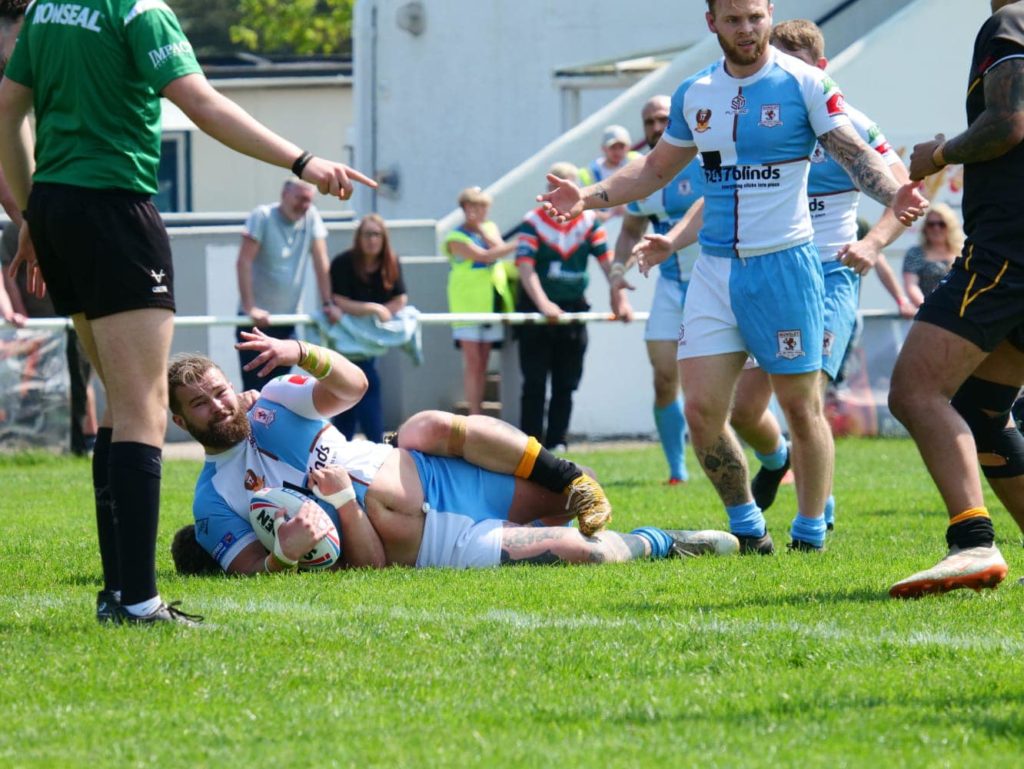 So far so good for the visitors, but from a kick Cam Brown registered 4 points for the Choughs and Rusling converted, before former Hunslet favourite Tommy Ashton cleared up after a spilt kick to touch down for Cornwall. 10-12